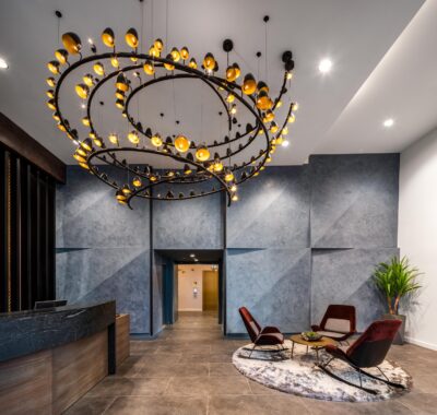 Conveniently located a short walk from Lake Merritt, two BART stations, and local bars and restaurants, the project is targeted towards a young professional demographic. Designed to create a luxury resort ambiance, the sophisticated interiors feature a palette of colors, textures, and finishes that synchronize with the contemporary architecture. Amenity spaces include a co-working lounge with reservable conference and meeting rooms - all fully equipped with the latest technology, elegant leasing office, bicycle parking with adjacent workshop, controlled access bicycle parking with adjacent workshop, pet washing and grooming station, 24-hour fitness and training facility, and a large event space.