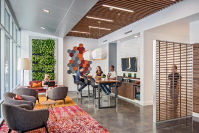 Originally designed and completed by LPAS in 2005, 800J Lofts is a 225 unit mixed-used infill building in the heart of Sacramento’s new Entertainment District and 2 blocks up from the new Golden 1 Center Arena. Features including a live greenwall, new furniture and finishes, data provisions, and presentation monitors bring a renewed look and functionality the reception, lounge, and coffee/refreshments areas of these modern Midtown apartments.