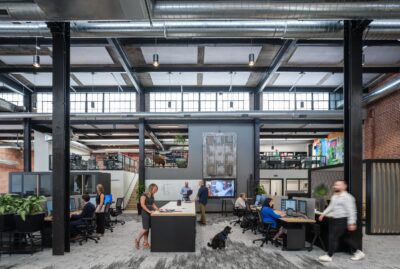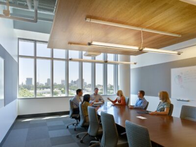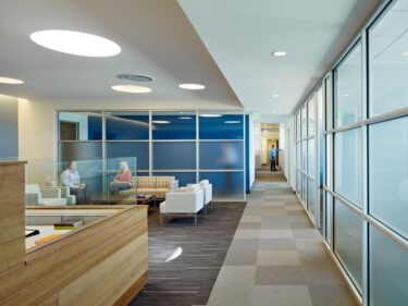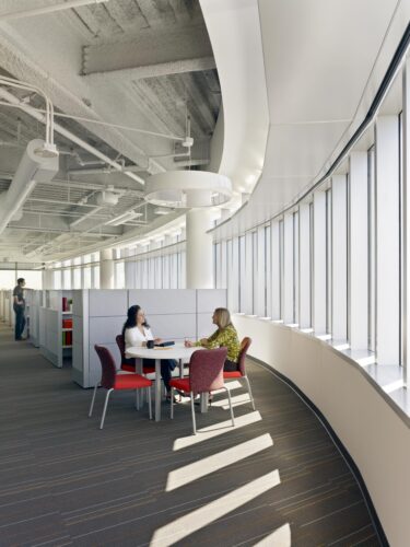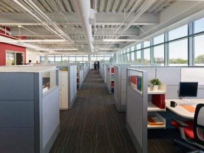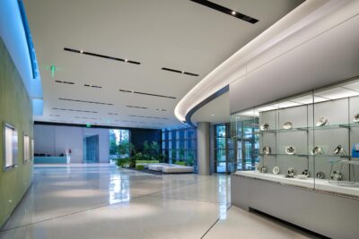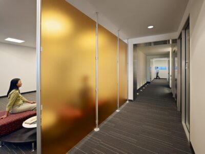 The six-story, 157,000 square foot building features street level retail, public plazas with water features, and a 400-seat pavilion used by the public for community events. The building’s form, with its curtain wall varying in color, transparency and texture, accentuates the sense of motion in the façade, and reflects the client’s stimulating culture. This project was completed three months ahead of schedule and $5 million under budget.