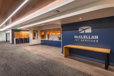 The renovation of the McClellan Jet Services Fixed Base Operator (FBO) terminal elevates both form and function, delivering a sophisticated interior experience that aligns with the high standards of its corporate and military clientele. LPAS interior designers infused the historic Building 251 with contemporary elegance while honoring its mid-century roots.