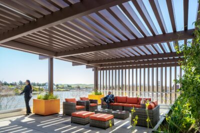 "STA employees enjoy spectacular views of the Suisun City Marina from the third story conference room and rooftop deck"
